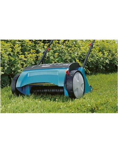 Με τον Ηλεκτρικό εξαερωτήρα GARDENA EVC 1000, μπορείτε να αφαιρέσετε βρύα, νεκρά στελέχη και ζιζάνια, βελτιώνοντας καθοριστικά με τον τρόπο αυτό την απορρόφηση του αέρα, του νερού και των θρεπτικών στοιχείων από το γκαζόν. Αιχμηρές λεπίδες με απόκλιση, κατασκευασμένες από ειδικά σκληρυμένο, γαλβανισμένο ανοξείδωτο χάλυβα, διαπερνούν το γκαζόν κατά χιλιοστά και αφαιρούν τα ανεπιθύμητα ξερά στελέχη και τη νεκρή χλόη από το χώμα.